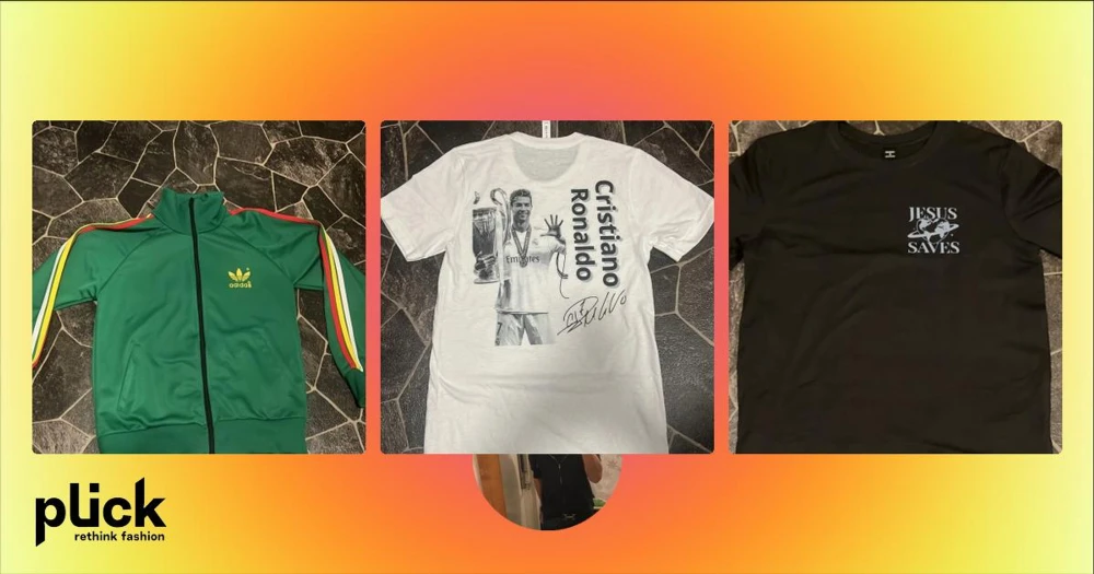 Mörkgrå t-shirt med kors och text - Säljer en mörkgrå t-shirt med ett vitt kors på bröstet och stor röd/vit text på ryggen: 'Believe in what you pray for'. T-shirten har rund hals och korta ärmar. Perfekt för dig som gillar statement-plagg.
