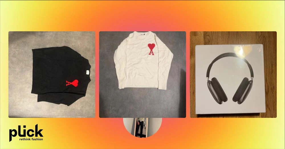 Svart stickad tröja Ami Paris  - Svart stickad tröja från Ami Paris med röd hjärtlogga och bokstaven A på bröstet. Tröjan har rund halsringning, ribbade muddar och lång ärm. Perfekt för dig som vill ha en stilren men ändå unik look.