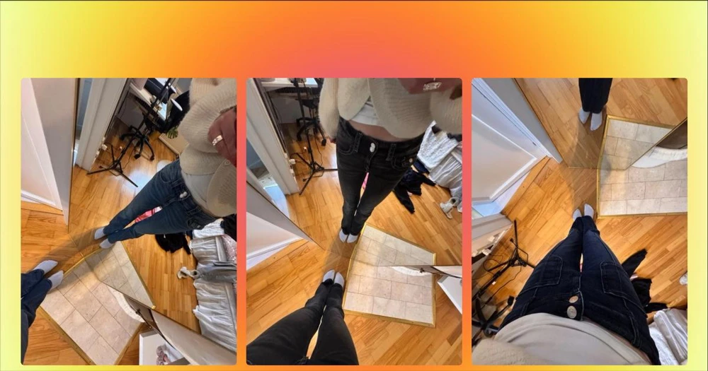 Mörkblå bootcut jeans med brodyr - Säljer ett par mörkblå bootcut jeans med vita kontrastsömmar och snygg brodyr på bakfickan. Jeansen har låg midja och klassisk femficksdesign. Perfekta för dig som gillar en avslappnad men ändå trendig stil.