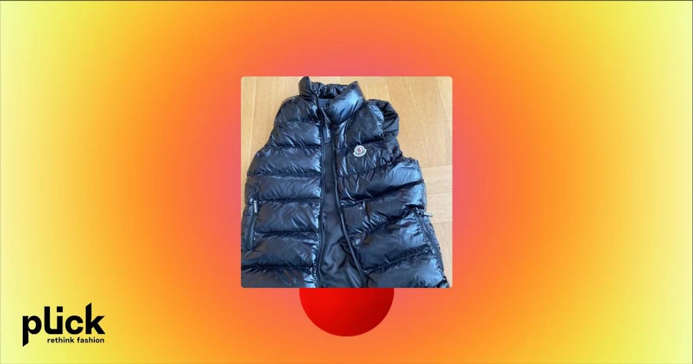 Svart dunväst från Moncler - Snygg svart dunväst från Moncler med glansig finish och klassisk logga på bröstet. Västen har hög krage, två fickor med dragkedja och quiltad design. Perfekt att slänga över en hoodie när det är kyligt ute. Innerfoder med coolt serietryck.