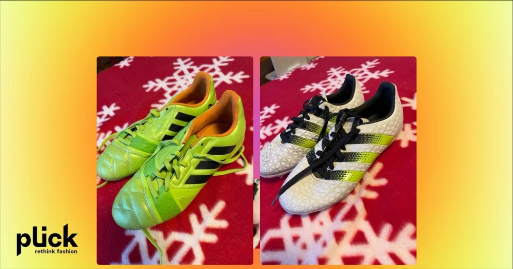 Adidas 16.3 vita fotbollsskor - Säljer ett par Adidas 16.3 fotbollsskor i vitt med svarta och neongula ränder. Skorna har snörning och en mönstrad ovandel i syntetmaterial. Adidas-logga i blått på hälen och insidan. Perfekta för dig som vill sticka ut på planen.