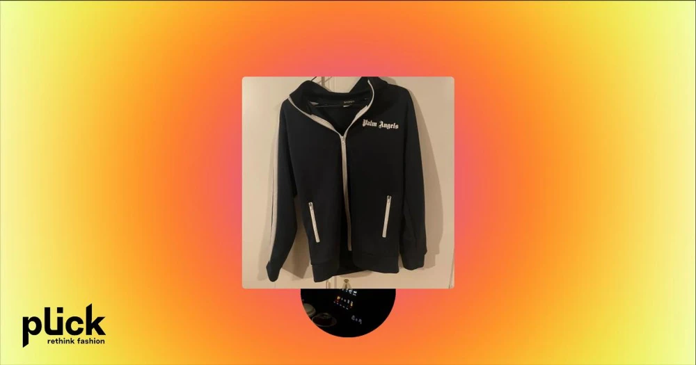 Palm Angels svart bomberjacka - Marinblå  bomberjacka från Palm Angels med vita detaljer och dragkedjor. Jackan har vita ränder längs ärmarna, ståkrage och logotypen broderad på bröstet. Tillverkad i mjukt syntetmaterial, perfekt för en streetwear-look.