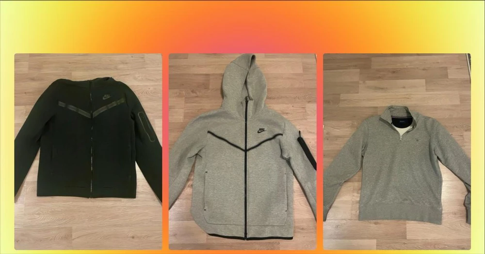 Grå Nike Tech Fleece hoodie - Snygg grå Nike Tech Fleece hoodie med hel dragkedja och svarta detaljer. Har en huva, fickor framtill och en extra ficka med dragkedja på ärmen. Tillverkad i mjukt och bekvämt material, perfekt för en sportig och avslappnad stil. Helt ny knappast använd. Storlek S men passar för M också.