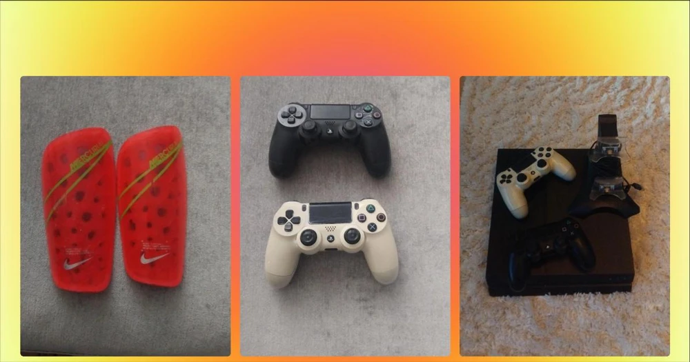 Playstation 4 med två handkontroller - Säljer en svart Playstation 4 med en svart och en vit DualShock 4-handkontroll samt en laddstation för kontrollerna. Konsolen har en stilren, fyrkantig design och är tillverkad i plast. Perfekt för gamingkvällar med vänner.