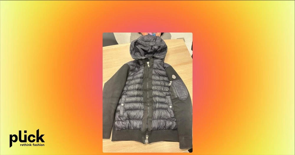 Svart dunjacka med huva från Moncler - Snygg svart dunjacka från Moncler med quiltad front, stickade ärmar och huva. Jackan har dragkedja framtill, fickor med tryckknappar och en extra ficka med dragkedja på ärmen. Perfekt för kalla dagar och riktigt stilren look. Priset kan diskuteras!😁