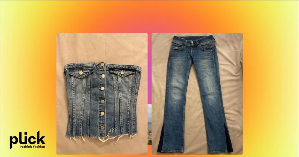 Populär jeans korsettopp från Zara - Säljer en snygg jeans korsettopp från Zara med knappar framtill och två dekorativa bröstfickor. Toppen är axelbandslös och har rå kant nertill för en edgy look. Perfekt till sommaren för en snygg sommar outfit!