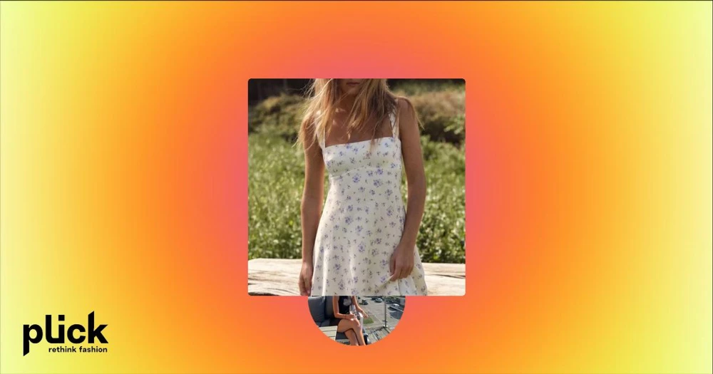 Ljusblommig kortklänning med knyt - Superfin ljus kortklänning med lila blommönster och breda axelband. Klänningen har öppen rygg med knyt och en lätt utsvängd passform.