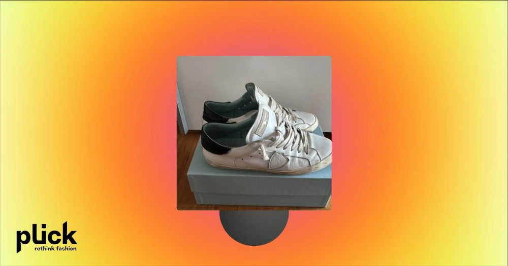 Vita sneakers frÄn Philippe Model  - SÀljer ett par vita sneakers frÄn Philippe Model med svarta detaljer pÄ hÀlen och bruna gummisulor. Skorna har snörning och en klassisk lÄg profil. Perfekta för en stilren och avslappnad look.