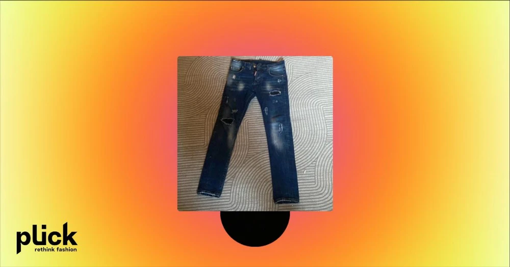 Dsquared2 blå skinny jeans med slitningar - Snygga blå jeans från Dsquared2 med skinny passform och coola slitningar samt färgstänk framtill. Klassisk femficksmodell med ikonisk Dsquared2-detalj på fickan och patch bak. Perfekta för dig som gillar streetstyle och vill sticka ut.