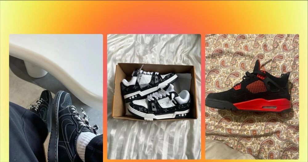 Louis Vuitton svartvita sneakers - Snygga Louis Vuitton sneakers i svart och vitt med klassiskt monogrammönster. Skorna har rund tå, platt sula och är tillverkade i skinn och textil. De har vita snören och coola LV-detaljer på sidan och tungan. Perfekt för dig som gillar exklusiv streetstyle.