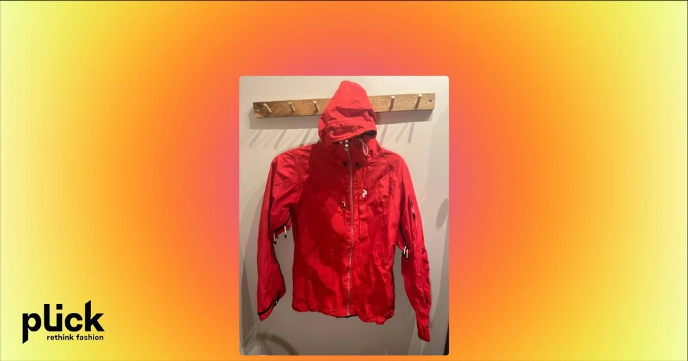 Peak Performance: röd skaljacka - Röd skaljacka från Peak Performance med huva,  dragkedja, flera praktiska fickor med dragkedjor och justerbara ärmslut. Det enda jag hittar är att dragkedjan fram är torkad (?) - därav pris. I övrigt bra skick.