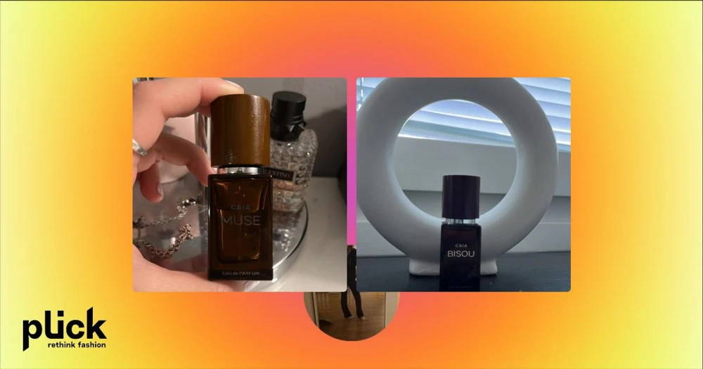 Parfym CAIA Bisou - Säljer en elegant parfymflaska från CAIA med doften Bisou. Flaskan är mörk och stilren med en svart kork. Perfekt för den som vill ha en sofistikerad doftupplevelse.