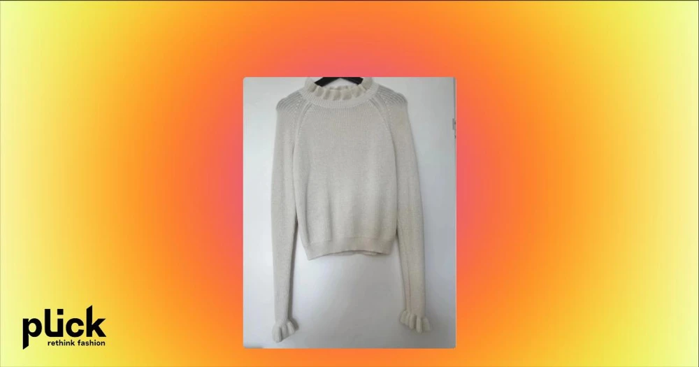Vit stickad tröja med volangkrage - Supersöt vit stickad tröja med volangdetaljer vid krage och ärmslut. Tröjan har långärmade raglanärmar och en ribbad, croppad nederkant. Perfekt för dig som gillar mjuka och romantiska vibes i din garderob. Fint skick, inte använd mycket, ev lite noppror som syns på bild nere vid resår. Cremevit  Djur och rökfritt hem 🏠