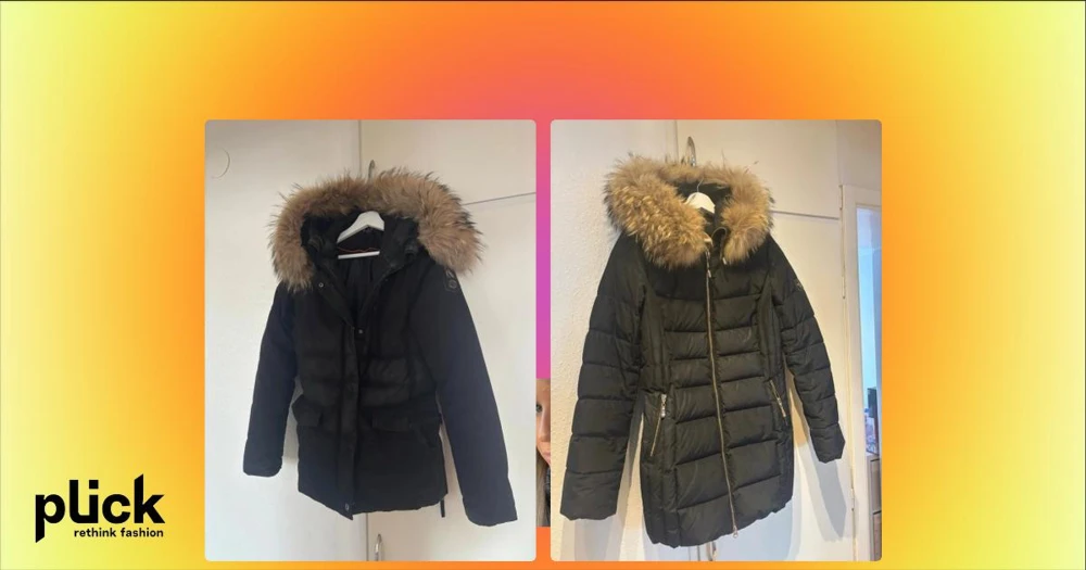 Svart parkajacka med päls från Hollies - Parkajacka från Hollies i svart med fluffig päls runt huvan. Jackan har långa ärmar, stora fickor och snygga detaljer som knappar och dragkedja. Perfekt för kalla dagar och har en klassisk look med badge på ärmen.