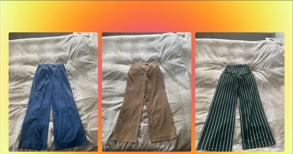 Gröna randiga wide byxor - Snygga gröna byxor med vita ränder och breda ben. De har elastisk midja.