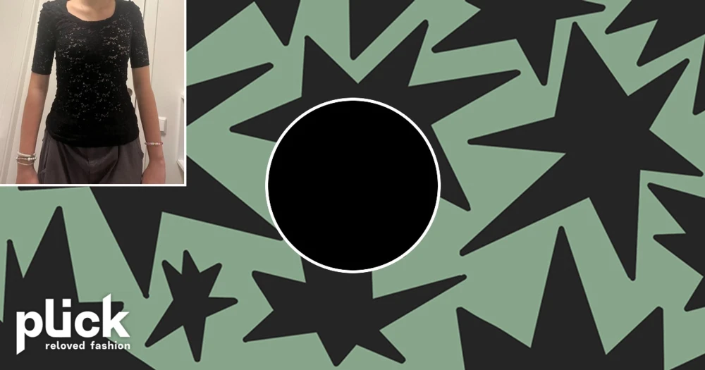 Svart topp/T-shirt med mönster  - Har använts typ 1 gång, håller bra, lite stickig, helst ha något under,