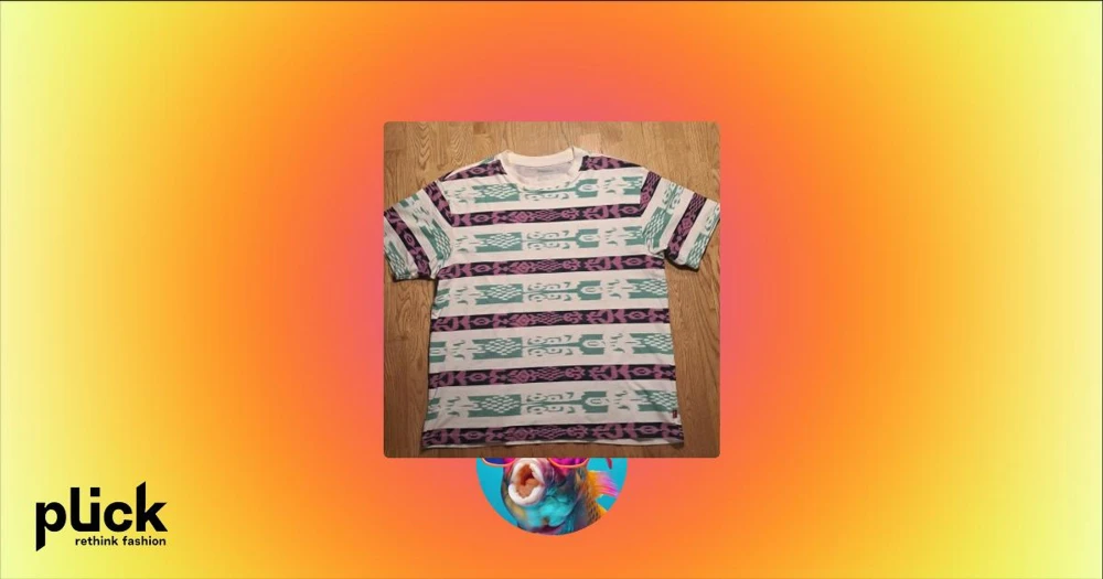 Mönstrad t-shirt från Levi's - Säljer en cool t-shirt från Levi's med ett unikt mönster i turkos, lila och vitt. T-shirten är kortärmad och har en normal passform. Perfekt för dig som vill ha en färgstark tröja till sommaren. Är väldigt bekväm och kostar ny 600 kr