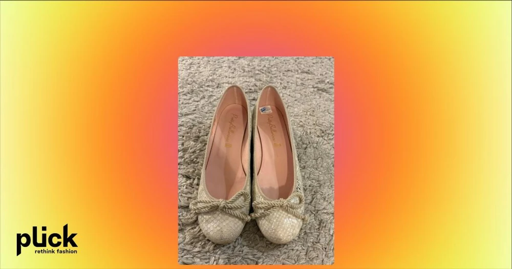 Beige ballerinaskor Pretty Ballerinas - Snygga beige ballerinaskor från Pretty Ballerinas med låg klack och ormskinnsmönster. Skorna har en dekorativ rosett framtill och glittriga detaljer som ger extra stil. Insidan är ljusrosa och materialet känns lyxigt och trendigt.