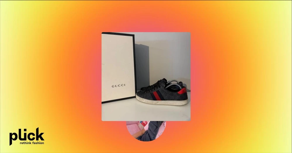 Gucci sneakers med röd och blå detalj - Snygga Gucci sneakers i svart med klassiskt GG-mönster, röda och blå ränder på sidan samt metallicröd och metallicblå häl. Skorna har snörning och platt sula. Materialmix av skinn och syntet, perfekt för dig som vill sticka ut med lyxig streetstyle.