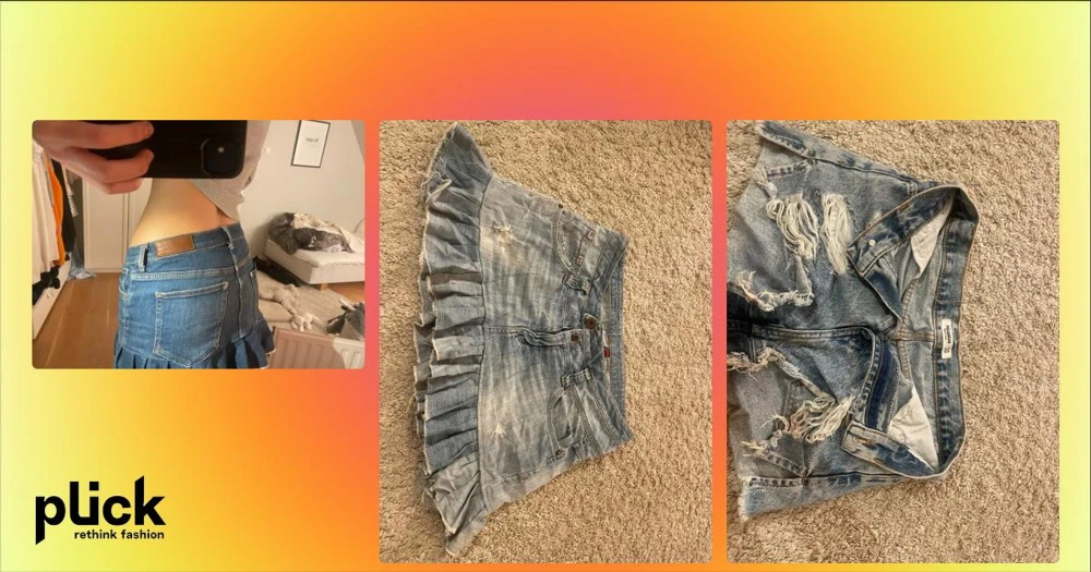 Blå jeanskjol med volangkant - Säljer en blå jeanskjol med volangkant och råa kanter längst ner. Kjolen har klassiska jeansfickor både fram och bak, bälteshällor och knappstängning. Perfekt för dig som gillar en trendig och avslappnad stil.