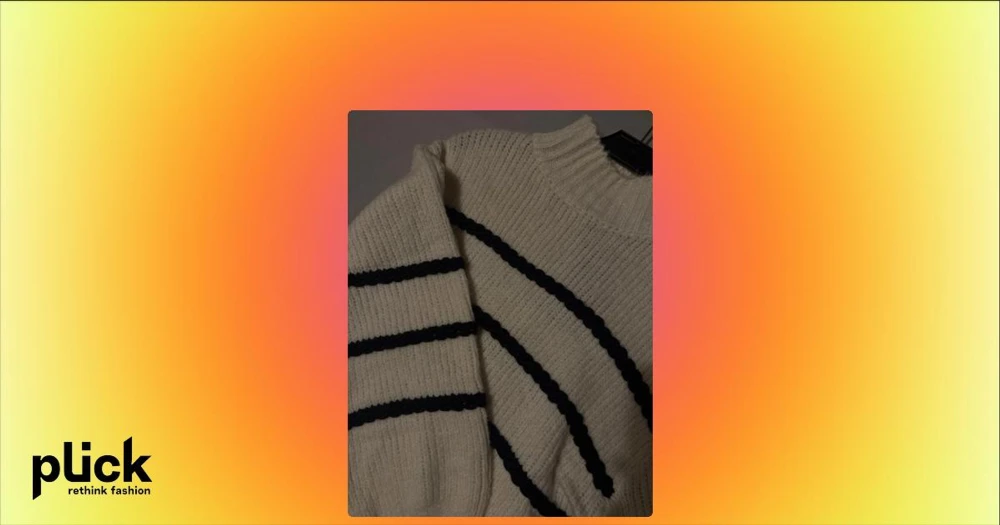 Randig stickad tröja med polokrage - Säljer en mysig stickad tröja i offwhite med svarta, grova ränder. Tröjan har polokrage och är långärmad med loose passform. Perfekt för dig som gillar klassisk stil med en twist. Materialet är tjockt och ribbstickat, vilket gör den extra skön under kyliga dagar.
