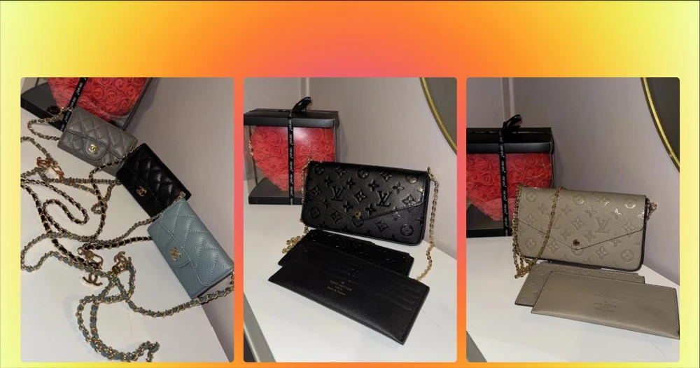 Mini väska  - Grå mini väska med guldiga detaljer. Som en korthållare.