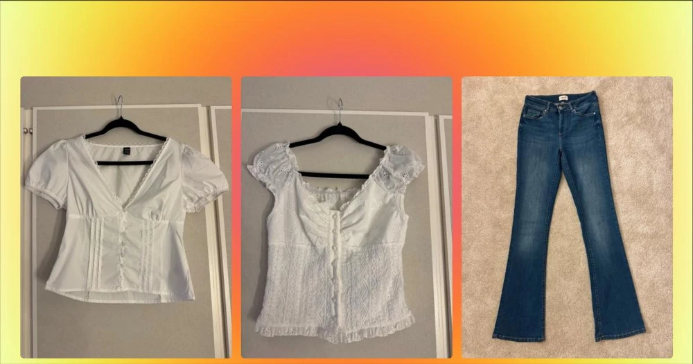 Söt vit topp  - Säljer en vit blus från Isolde med vågigt broderat mönster och korta ärmar. Perfekt för dig som gillar stilrena toppar med lite extra detaljer.