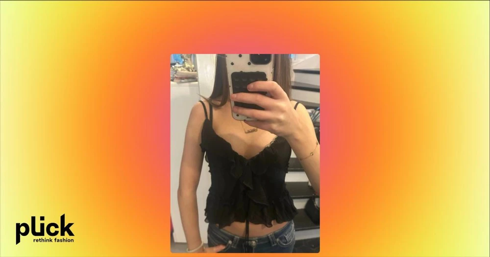 Svart volangig linnetopp från Amisu\Newyorker  - Supersöt svart linnetopp från Amisu med tunna axelband, volangdetaljer och lätt transparent tyg. Toppen har en croppad passform och v-ringad urringning, perfekt att styla med jeans eller kjol. Materialet känns lätt och luftigt.