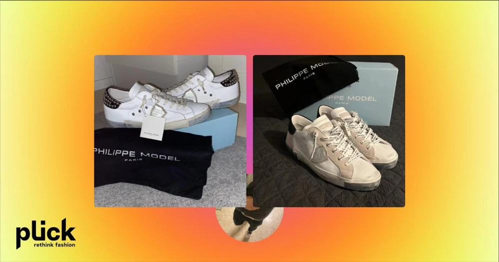 Philippe Model  - Säljer ett par snygga vita sneakers från Philippe Model med svarta detaljer på hälen och silverfärgad logotyp på sidan. Skorna har snörning med märkta skosnören och platt sula. Perfekta för en trendig och avslappnad stil. (ANVÄND BARA EN GÅNG