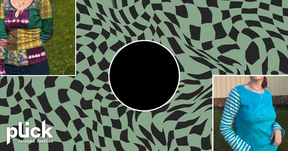 Färgglad patchwork tröja - Säljer en unik och färgglad patchwork tröja med ett coolt mönster i grönt, lila och gult. Tröjan har långa ärmar och en dekorativ snörning vid halsen. Perfekt för dig som vill sticka ut med en bohemisk stil!