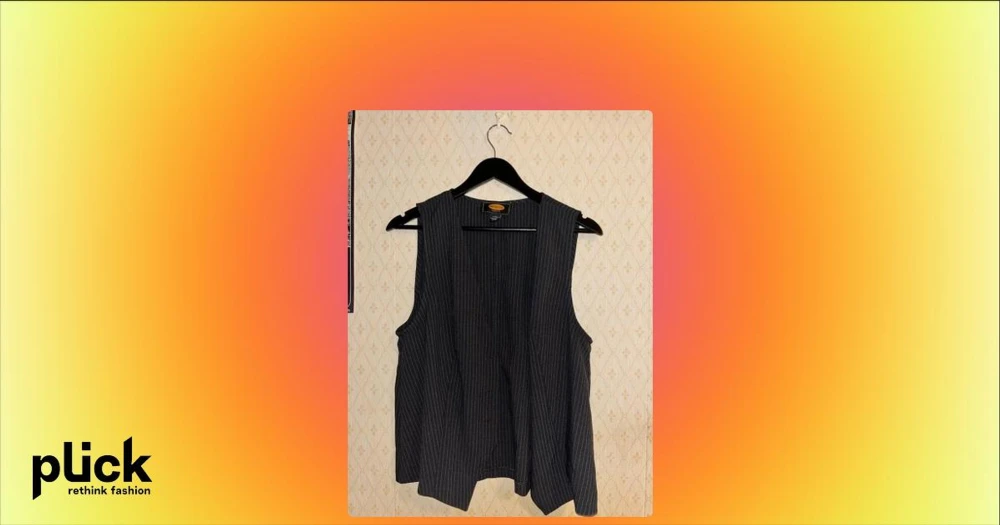 Randig svart väst från Urban Outfitters - Striped black-grey V-neck vest from Urban Outfitters. 3 buttons, used only couple times