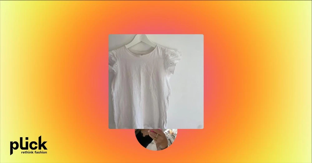 Vit blus med broderade ärmar H&M - Söt vit blus från H&M med korta volangärmar som har broderade blommor. Toppen har rund halsringning och är gjord i mjuk bomull. Små fläckar men inte jättesynliga!