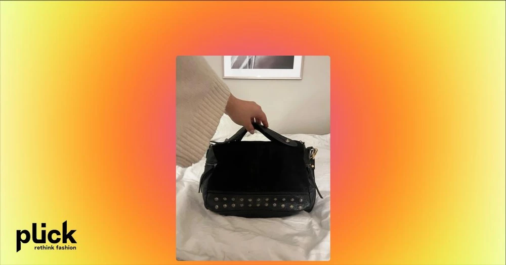Svart handväska med nitar - Cool svart handväska i mocka och läder med silverfärgade nitar längs nederkanten. Väskan har dubbla handtag och dragkedjedetaljer på sidorna. Perfekt för dig som gillar en edgy stil och vill ha plats för allt du behöver.