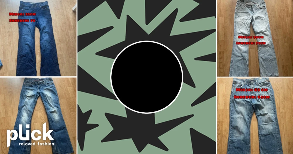Utsvängda jeans - Mörkblå utsvängda jeans, oklart vilket märke. Fint skick. Mått på bilderna. Hör av dig för mer info!