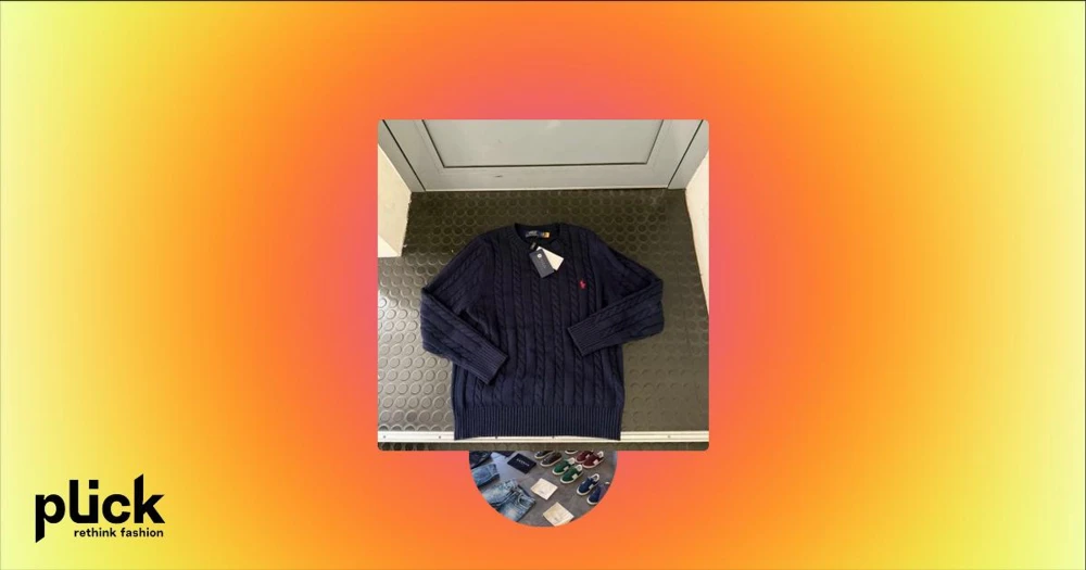 Mörkblå kabelstickad tröja Polo Ralph Lauren - Kabelstickad mörkblå tröja från Polo Ralph Lauren med rund halsringning och röd broderad logga på bröstet. Klassisk och tidlös design i mjukt material, perfekt för lager-på-lager-stil.
