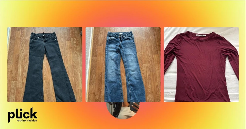 Blå bootcut jeans från Gina Tricot - Snygga blå jeans från Gina Tricot i klassisk bootcut-modell. Jeansen har normal passform, fem fickor och dubbla knappar i midjan. Tillverkade i jeansmaterial med ljusare tvätt och tydliga sömmar. Perfekta för dig som gillar en avslappnad och trendig look.