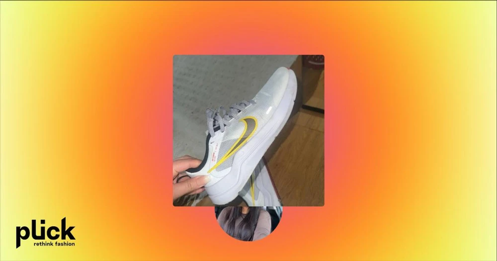 Nike vita sneakers med gul swoosh - Nike sneakers i vitt med gråsvarta detaljer och en stor gul swoosh på sidan. Skorna har snörning, meshpaneler för andningsförmåga och en sula med röd och blå undersida. Perfekta för dig som gillar sportig och fräsch stil.