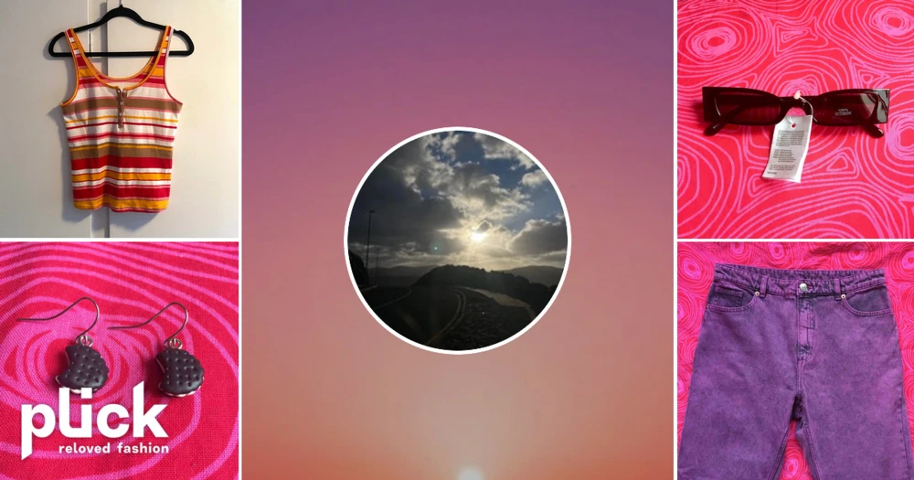 - 🍎 Röd t-shirt med vitt tryck där det står ’Happy days’. Obs! Det finns sprickor i texten 🍎