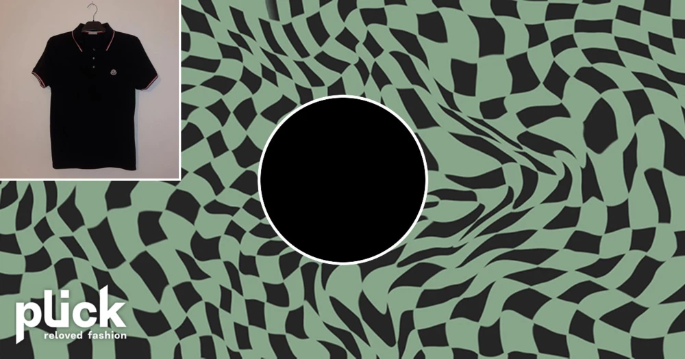 Svart Moncler pikétröja med röd/vit kant - Svart pikétröja från Moncler med korta ärmar och klassisk krage. Röd och vit randig kant på ärmslut och krage.
