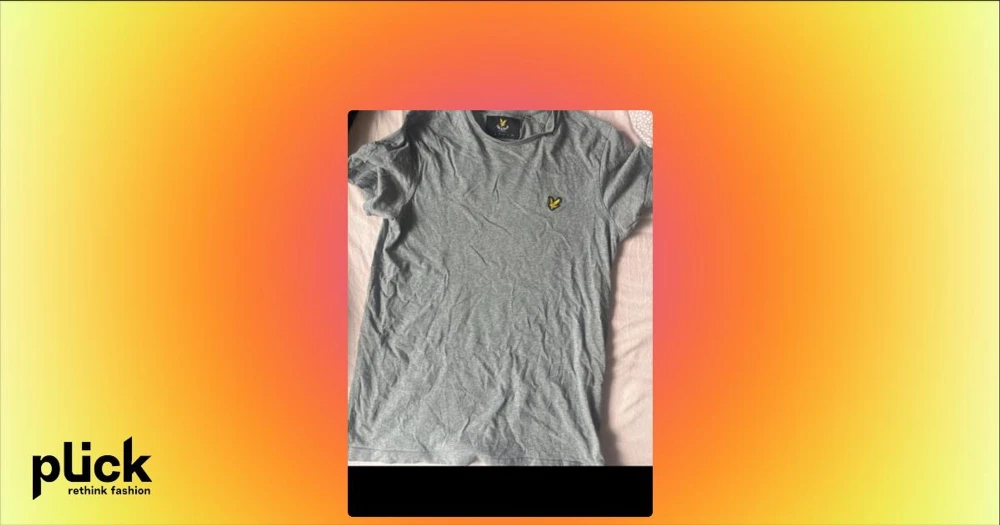 Grå t-shirt från Lyle & Scott - Säljer en stilren grå t-shirt från Lyle & Scott med klassisk gul logga på bröstet. T-shirten har rund hals och korta ärmar, perfekt för en chill och enkel look. Materialet är mjuk bomull som känns skönt mot huden.