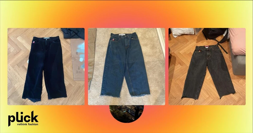 Svarta jeans från Protect london - Unika svarta jeans från Protect london med bred passform och stor röd-vit brodyr framtill. Jeansen har klassisk femficksdesign och cool streetwear-vibe.