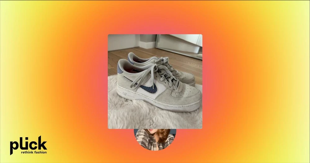 Nike Air Force 1 i ljusgrå mocka - Nike Air Force 1 sneakers i ljusgrå mocka med blå detaljer och vit sula. Swoosh-loggan har ett rutigt blått mönster och insidan är fodrad med röd textil. Klassisk rund tå, snörning och perforeringar på tån för extra ventilation. Perfekta för dig som gillar stilrena och sportiga sneakers.