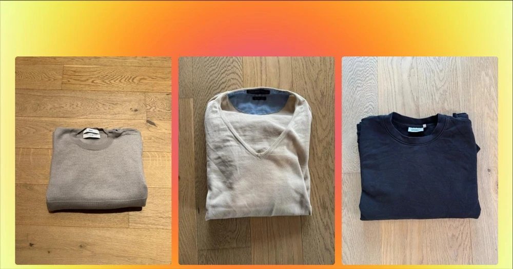 Tröja från Whyred i merinoull - Mycket fin tröja från Whyred, i stl herr S. (Det står large på etiketten, men den är vuxen herr-Small.) Den är i merino och med en fin krage med knappar. Den är så gott som ny, men med en liten (nästan osynlig) lagning i ryggen (pga fastnade i en galge). Färgen är ljus beige-grå. Mått: 52 över bröstet och 52 från halsen nedåt.