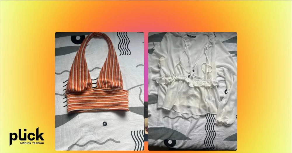 Randig ribbad halterneck topp - Säljer en ribbad halterneck topp från H&M med smala ränder i orange, vitt och beige. Toppen är ärmlös och har en croppad passform, perfekt för varma dagar. Materialet är mjukt och stretchigt för en bekväm känsla.