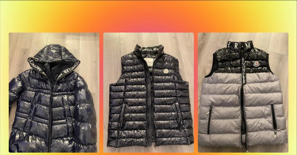 Moncler svart och grå pufferväst ( M storlek) - Snygg pufferväst från Moncler i svart och grått med glansig finish upptill och broderad logga på bröstet. Västen har hög krage med broderade bokstäver, två dragkedjefickor och stor Moncler-text längs dragkedjan. Perfekt för lager-på-lager och streetstyle. A-B+