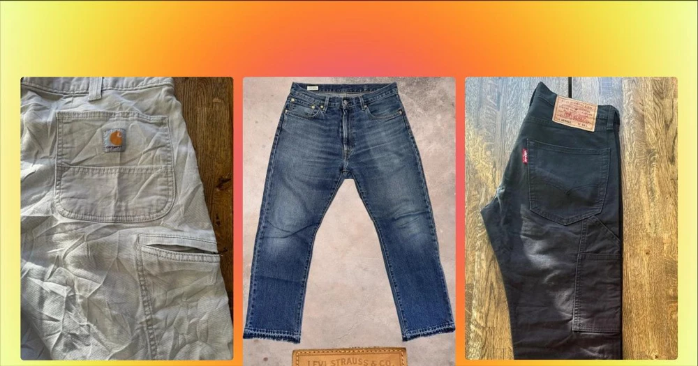 Vintage Carhartt relaxed fit 33/32 - Säljer ett par bruna Carhartt jeans i relaxed fit med klassisk femficksdesign och logga på bakfickan. Perfekta för dig som gillar en lite lösare passform och enkel, clean stil.