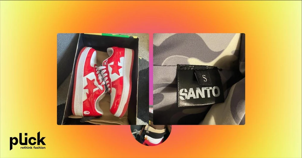 Rödvita sneakers från A Bathing Ape (2023) - bapesta skor för 2000kr köpte de för 7000kr 2023 använder inte de det därför vill sälja den