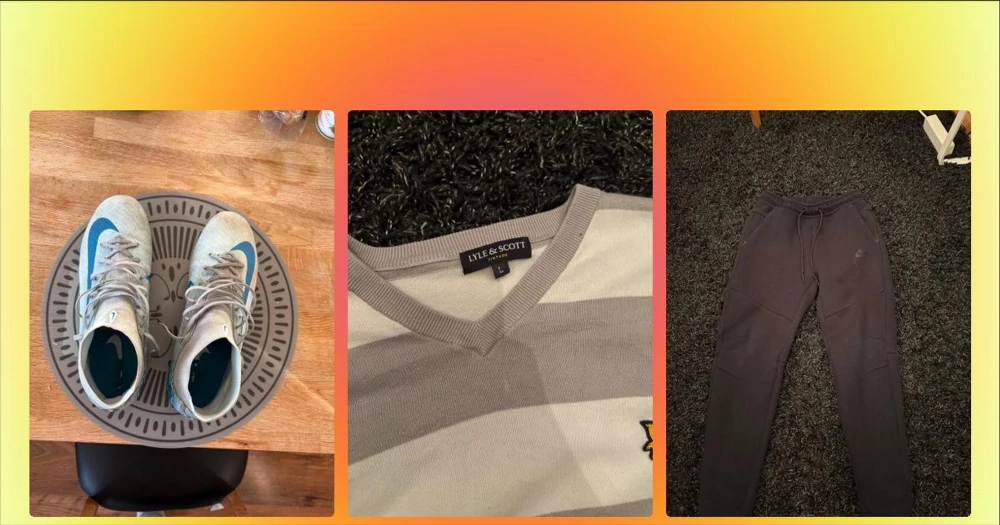 Randig Lyle & Scott tröja i grått och vitt - Snygg stickad tröja från Lyle & Scott i storlek L med breda grå och vita ränder. V-ringad hals och klassisk gul logga på bröstet. Långärmad med ribbade muddar och mjukt material som känns skönt mot huden. Perfekt för dig som gillar stilren och chill look.