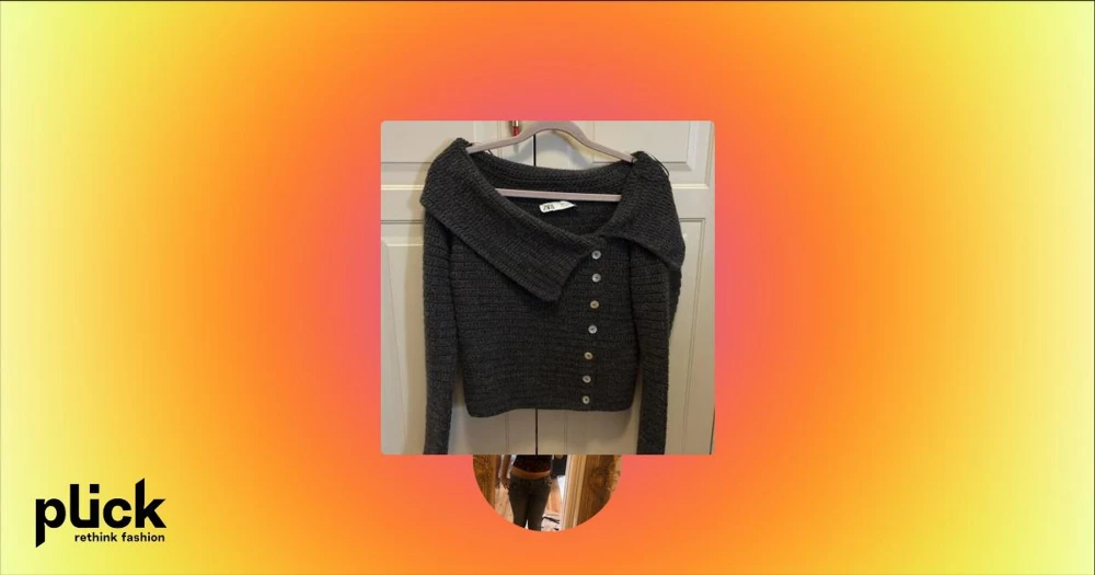 Mörkgrå stickad kofta från Zara - Mysig mörkgrå stickad kofta från Zara med stora krage och snygga knappar längs framsidan. Koftan har lång ärm och en lite loose passform, perfekt för lager på lager. Den grova stickningen ger en cool och avslappnad vibe.