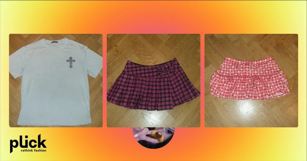 Rutig kortkjol med bältesdetaljer - Snygg kortkjol i rosa och svart rutigt mönster med två bältesdetaljer framtill. Perfekt för en trendig look!